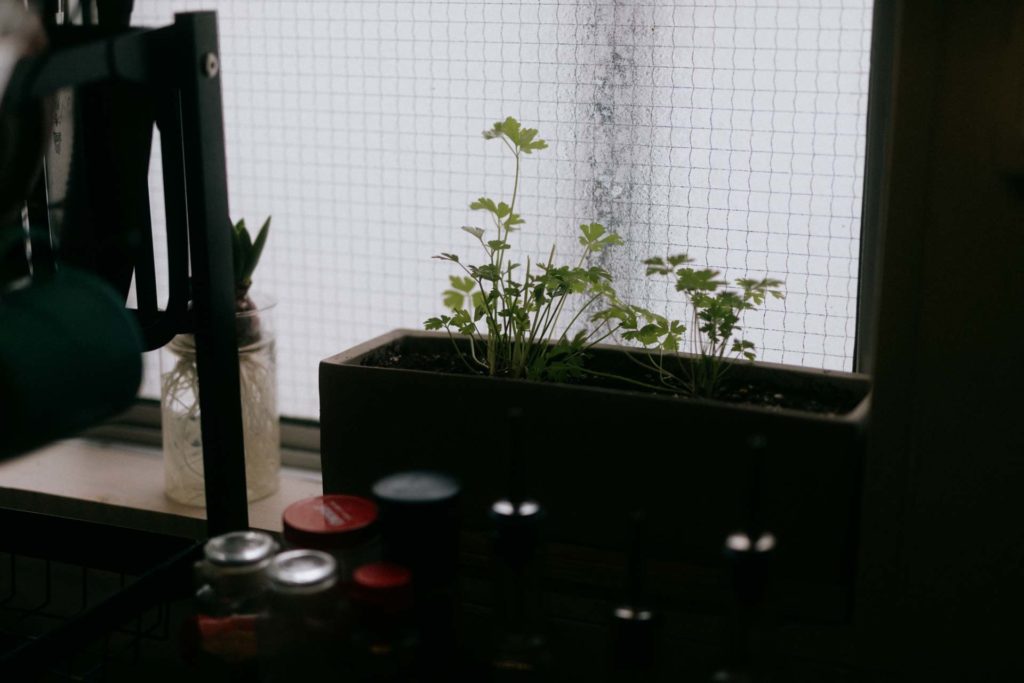最近ね、キッチンの窓にイタリアンパセリを小さなプランターに植えたんだ。